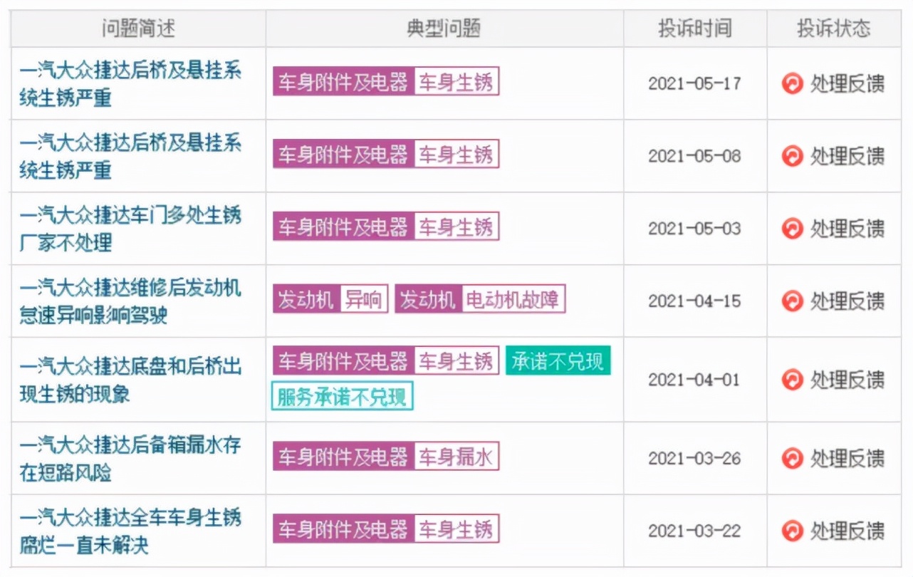 以賣得最好的捷達VS5為例,關于該車的質量問題成為網友關注的重點,捷達VS5正陷入了一系列的質量危機。例如制動系統異響、變速箱頓挫異響、發動機異響、轉向系統異響、輪胎開裂、車身漏水、車身生銹……從核心三大件到整車品質,大大小小的各種問題,在捷達VS5身上都能同時找到。