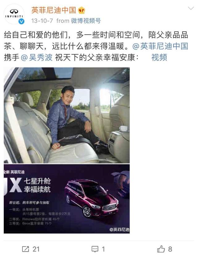 多好,希望英菲尼迪也好好考慮一下,在國內市場做好產品,別再琢磨代言人的事了。