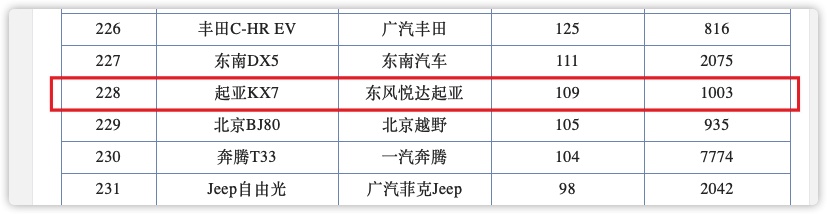 2.0T、7座,不到15萬、合資中型SUV,這幾個關鍵詞聯系在一起的時候,在當下火熱的SUV市場應該會成為一款熱門車型,但事實是,這款聽上去會成為爆款的車型,在11月僅僅售出了109臺,2021年1-10月共售出了1003臺,月均僅百臺,10月銷量排行第10名的車型,月銷量是它的150多倍!它就是來自東風悅達起亞的KX7。