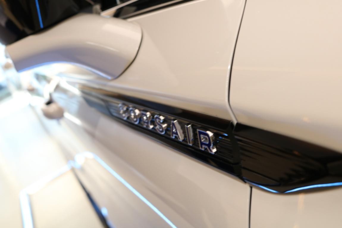 車身側面線條極為流暢,同時,車身A柱、B柱、C柱以及D柱均采用了黑化處理,營造出全懸浮式的視覺效果,另外,車身側面“CORSAIR”冒險家的英文標識從銀色改為了藍色,前翼子板處還配備了充電口。