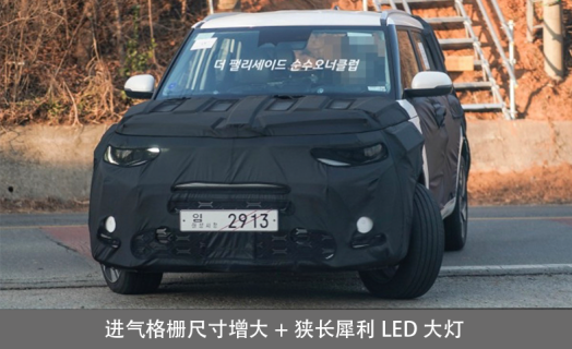 起亞秀爾將采用最新的家族式設計語言。雖然新車進行了著重偽裝,但從外觀造型就可以知道,還是我們熟悉的方盒子設計。新車前臉采用更大尺寸的進氣格柵,搭配兩側狹長犀利的LED大燈,使整車看上去比停售版的車型時尚太多。前包圍處的梯形通風口設計,也讓新車看上去更具有層次感。