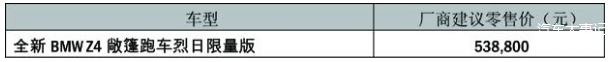 寶馬Z4烈日限量版僅售53.88萬元 限量100臺(tái)