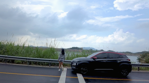 上山時遇見了一場大雨,本來就是山路十八彎的特殊路段,在大雨瓢潑中剛過了一個彎,下一個急彎又來了,可把小姐姐給緊張得,所幸北京現代昂希諾操控性相當不錯,在良好的底盤調教下安穩抵達山巔。