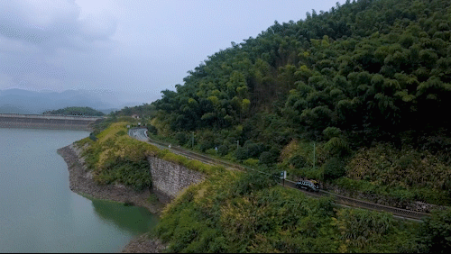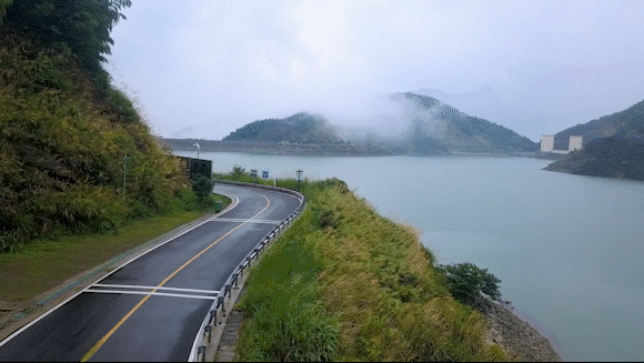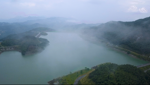與其他城市的山林不同,黑麋峰最為特別的就是穿越崎嶇蜿蜒的山道后,接近山頂的位置有一個巨大的水庫,好像一個大湖突然出現在群山之巔。