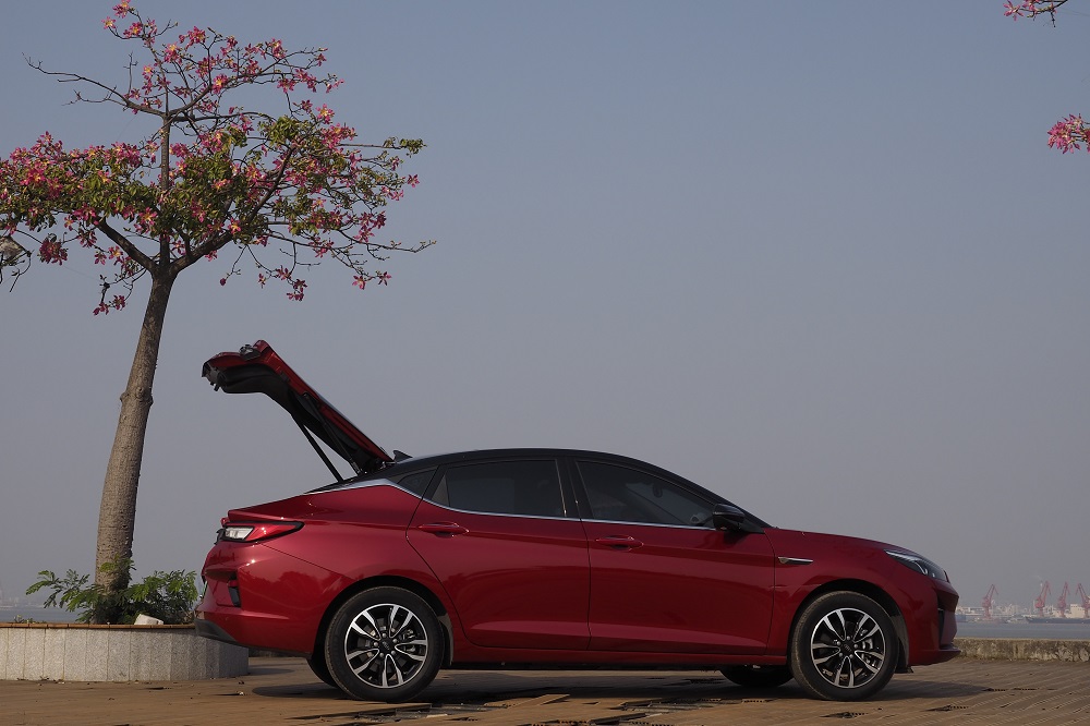 該車的車身長度4770mm,是同級別最長車身,接近B級車的規(guī)格,水滴形流線側(cè)面造型車身,體現(xiàn)較佳的空氣動力學(xué)特性,鯊魚鰭窗線,造型動感,更具辨識度。頂配車型才有的電動折疊外后視鏡,具備電加熱和鎖車自動折疊的功能,貼心又實用。