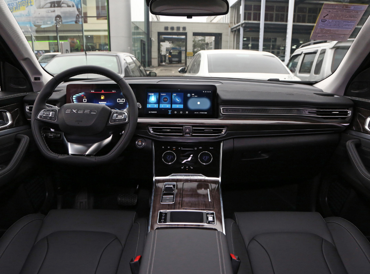 外觀方面,星途攬月采用最新的家族式設計語言,前臉以貫穿式鍍鉻飾條連接兩側LED大燈,飾條上還有"EXEED"字樣,進一步提升這款車型的品牌辨識度。而進氣格柵內部為三道橫向延伸的鍍鉻飾條,車尾還采用貫穿式尾燈和雙出排氣設計,視覺效果上更有力量感。