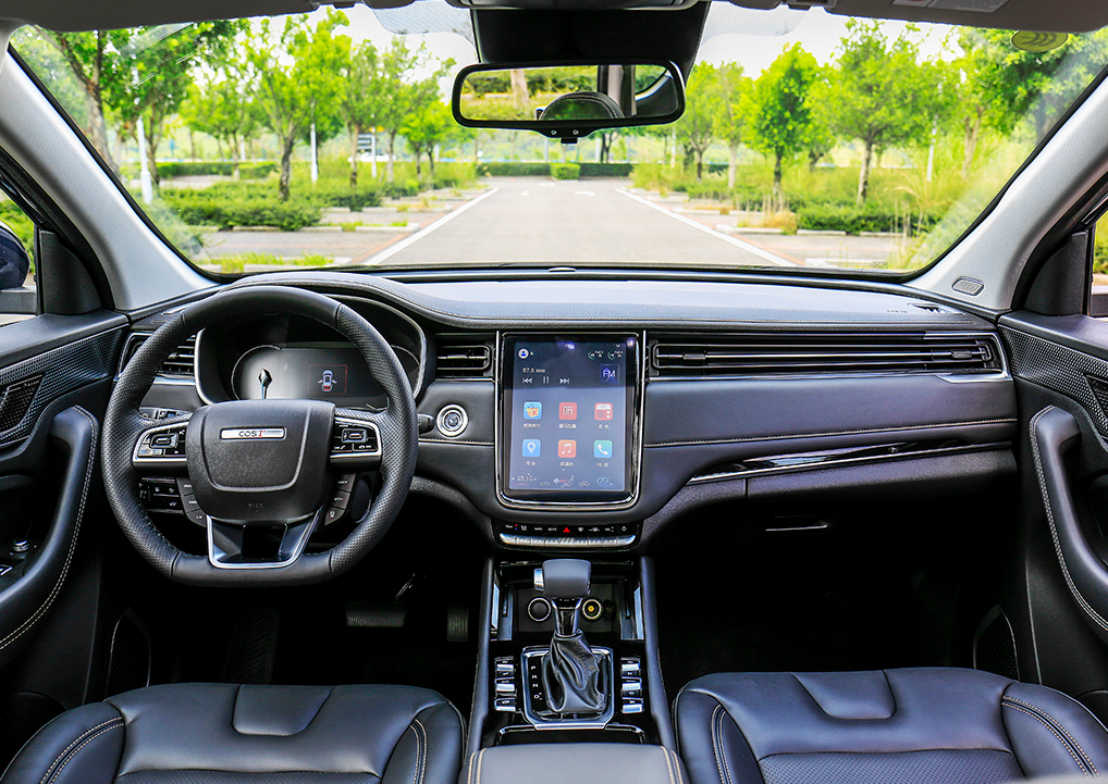 內飾方面,豪越采用了部分吉利ICON的設計元素,類似于“∞”造型的空調出風口頗有設計感,時下流行的智能科技配置一樣不落,諸如全液晶儀表、HUD抬頭顯示、中央觸控屏,另有平底式多功能方向盤以及多處儲物空間的設計,整個內飾既照顧到了科技感,也有著出色的實用性。