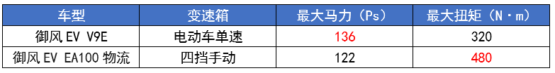 這款車不同于前面兩款車“應試”的模擬手動擋,它配備的是貨真價實的機械結構的手動變速箱,不過這個機械手動擋能起到的效果需要打個問號了,用電池容量和電機參數最為接近的V9E廂貨(自動擋)和EA100 物流車 95kwh(手動擋)對比,發現機械手動擋并沒有為御風ev帶來明顯的續航和性能提升,配上手動變速箱到底是為了什么呢?