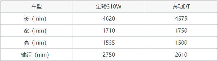 寶駿310W和逸動(dòng)DT尺寸/空間對比