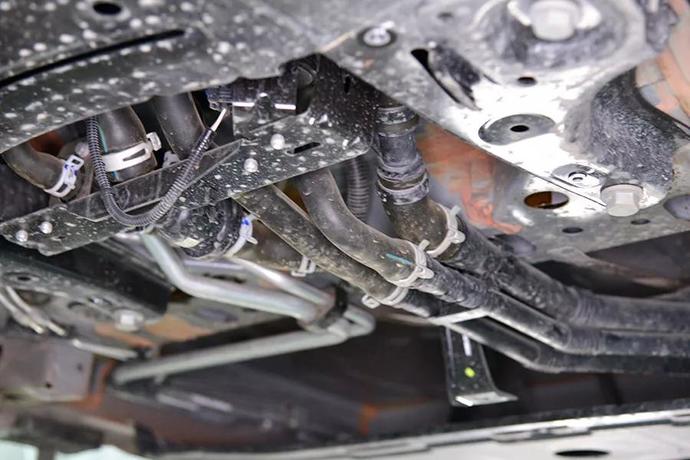 此外,我們還能看到,Smart的底盤雖然沒有兩側護板,但是有一塊大面積的整塊塑料護板,直接鋪滿底盤。將所有管線和油箱保護起來,整個設計還是很到位的。