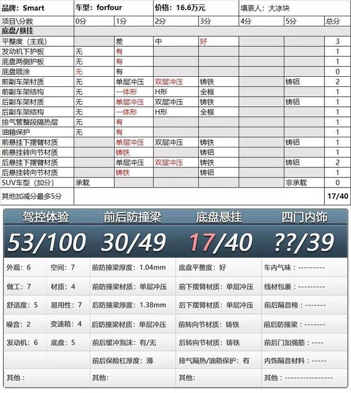 2017款smart forfour底盤評分