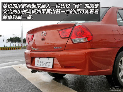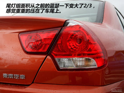 菱悅的尾部看起來給人一種比較“硬”的感覺,尾燈組面積從之前的藍瑟一下變大了2/3,感覺重重的壓在了車尾上。突出的小擾流板如果再含蓄一點的話可能看著會更舒服一點。