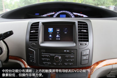 除了儀表臺(tái),和暢的中控觸摸屏也相當(dāng)不錯(cuò),觸摸按鈕較大,操作方便,屏幕的清晰程度也很好。除了導(dǎo)航、影音系統(tǒng)外,和暢的一大亮點(diǎn)是它的倒車影像系統(tǒng),這在同級(jí)別車型中很少見,這對(duì)于身形如此龐大的系統(tǒng)來說,這個(gè)功能再貼心不過了。