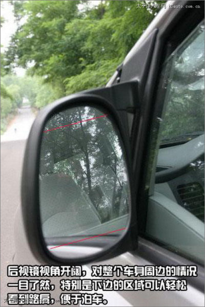 視角開闊的后視鏡對于整個車身周邊的情況,可以照顧的比較周全,瑞風5米長的車身,和1.8米的寬度基本上可以。特別是縱向的可視角度非常不錯, 可以在路邊泊車的時候,很容易看到路肩,瑞風找準市場定位。