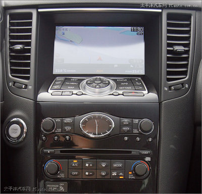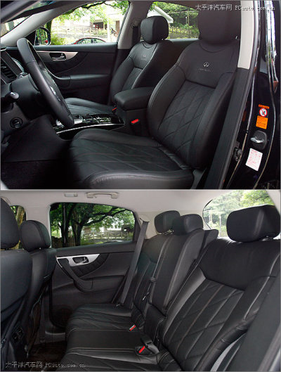 為了營造Infiniti一貫的日式乘坐氛圍,試駕車型采用黑色鋼琴烤漆飾板,點綴於中控臺和排檔座周圍。而方向盤、排檔座、手套箱上緣和車門手把等處,則以金屬飾板加以鋪陳。與上一代車型相較,全新FX的車室設(shè)計和質(zhì)感有相當(dāng)程度的進(jìn)步,更貼近原廠訴求的精致風(fēng)格;特別在塑料選用方面,讓整體車室質(zhì)感更趨一致。