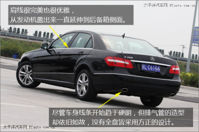 除了我們剛才提到車頭部分的諸多設(shè)計(jì)元素外,從側(cè)面我們也可以明顯的看出設(shè)計(jì)師希望的一種前沖感。照片中非常明顯,從腰線到側(cè)面防擦條,感覺前傾的相當(dāng)嚴(yán)重,而尾燈側(cè)面的上挑造型也進(jìn)一步加重了這種感覺。與上代車型相比,新一代的E級轎車沒有讓車頂太過圓潤,而是從B柱后刻意保留了一段平緩的區(qū)域,這不但讓其在側(cè)面很好地貫徹了整體設(shè)計(jì)風(fēng)格,也為進(jìn)一步提升車內(nèi)頭部空間、特別是后排空間創(chuàng)造了先決條件。