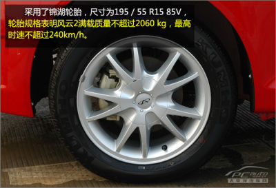奇瑞風云2量產車型采用195/55/R15的輪轂,前盤式后鼓式的剎車系統和麥弗遜式獨立前懸架和縱向拖曳臂式后懸掛。